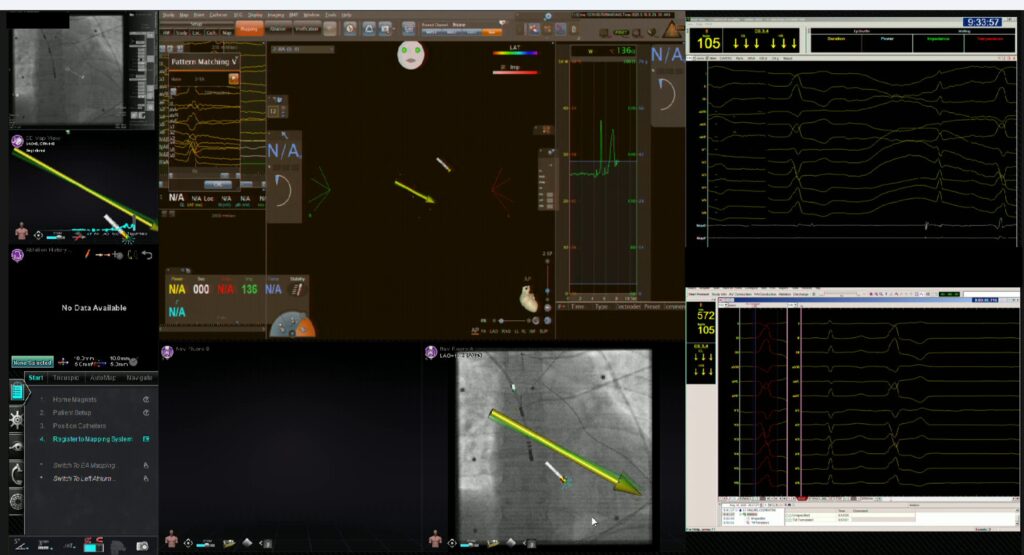 ARM procedures are performed using an alternative access to the vasculature of the arm(s). These procedures are carried out using the remote magnetic navigation system at the Royal Brompton Hospital (the only such system in the UK). Prof. Ernst is the pioneer of this novel technique which she developped during the COVID pandemic. ARM procedures allow for a fast recovery and don’t require any bed rest. Most of the patients are discharged on the same day after a few hours of observation.